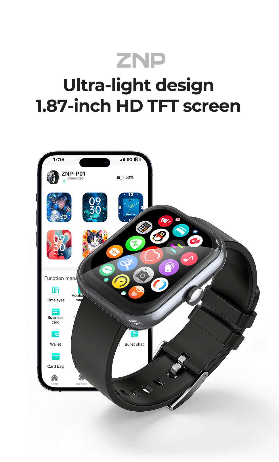 - ZNP P01 Smart Watch combines a 1.97-inch HD TFT large display with an ultra-thin lightweight design, delivering a clean and modern look inspired by premium smart watches, while providing smooth touch control and clear visibility for daily use and outdoor activities.