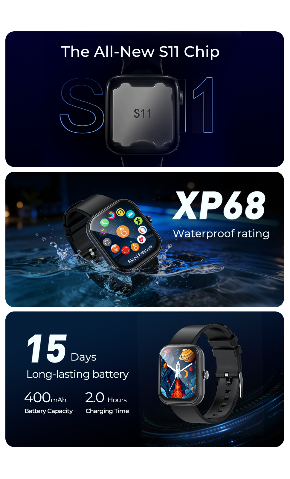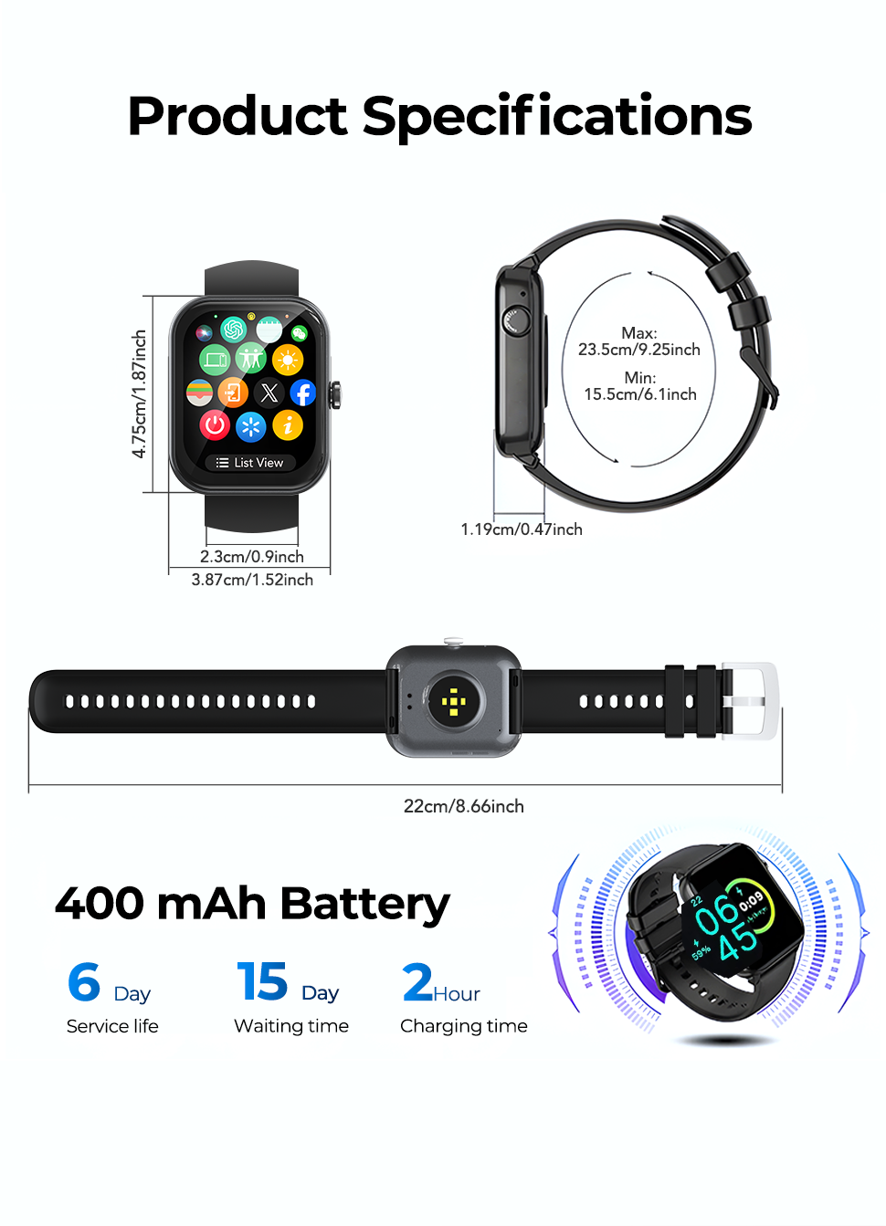 - Powered by a 400mAh battery with efficient power management and magnetic charging support, the ZNP P01 Smart Watch ensures extended usage time and stable performance, making it suitable for work, fitness, travel, and everyday scenarios.