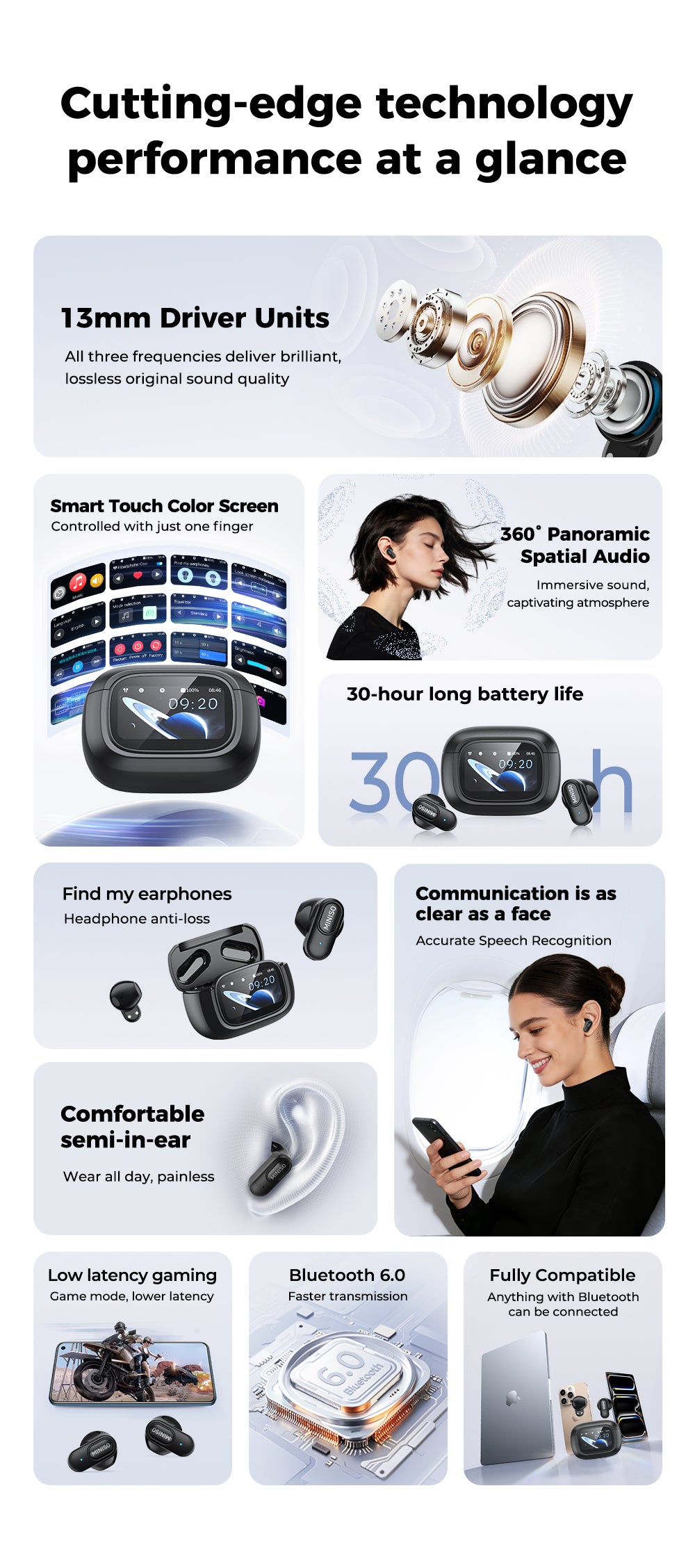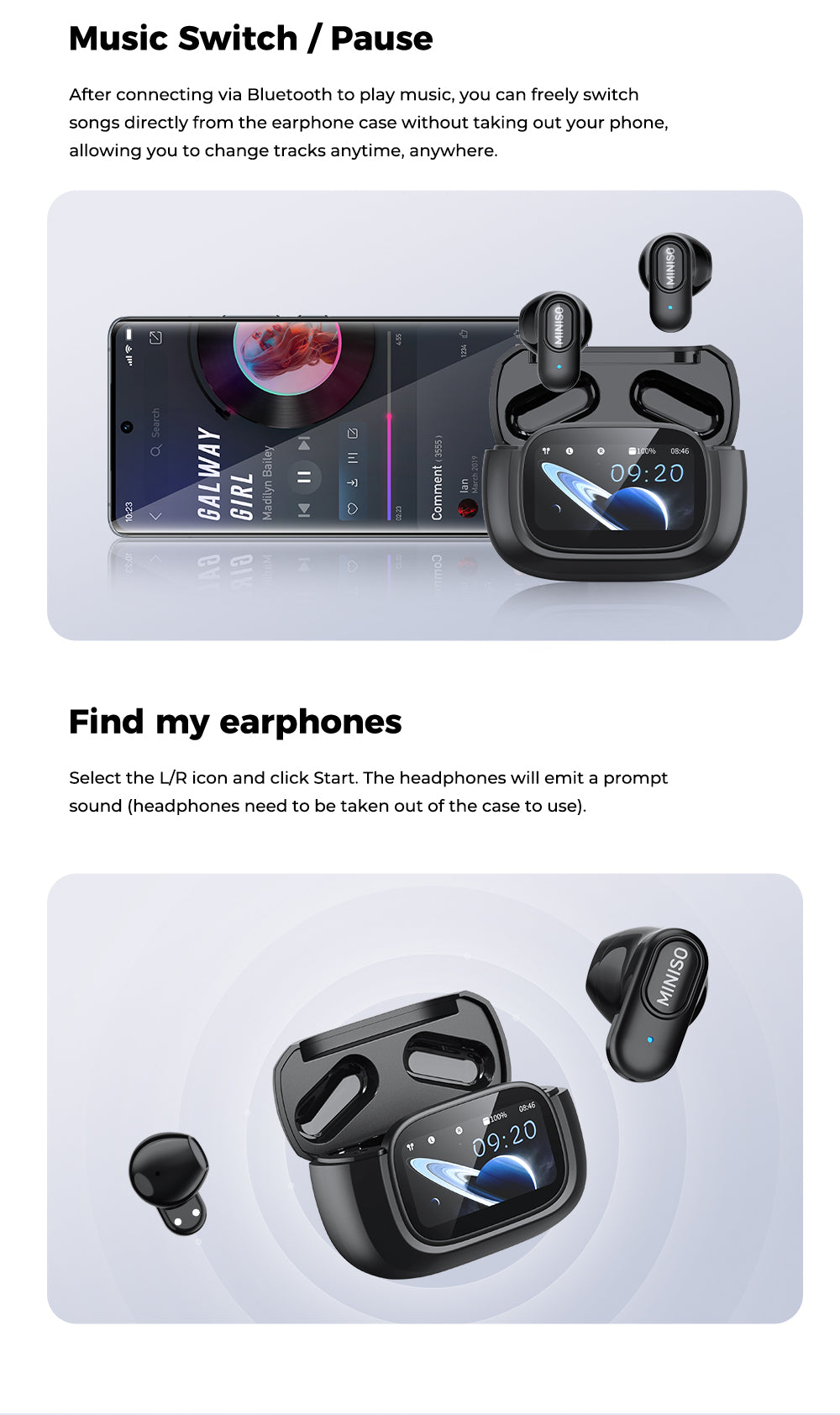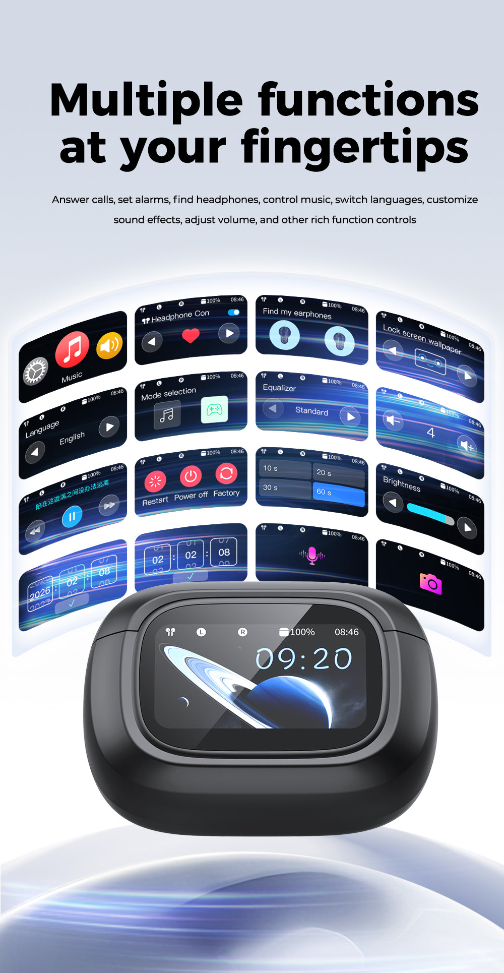 - Intuitive Touchscreen Control. A full-color smart display puts music, volume, and find-my-earbuds right on the case. One tap—no phone needed.