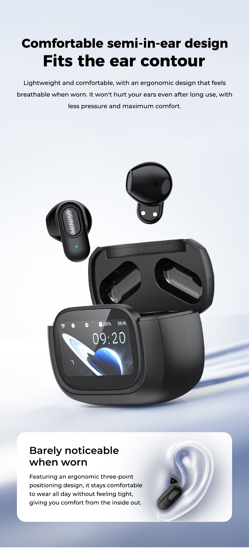 - Ergonomic Semi-In-Ear Comfort.Engineered with a three-point positioning design that follows the natural curve of your ear. Lightweight and pressure-free, it feels effortless even after hours of wear.