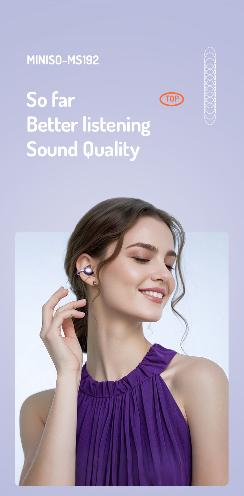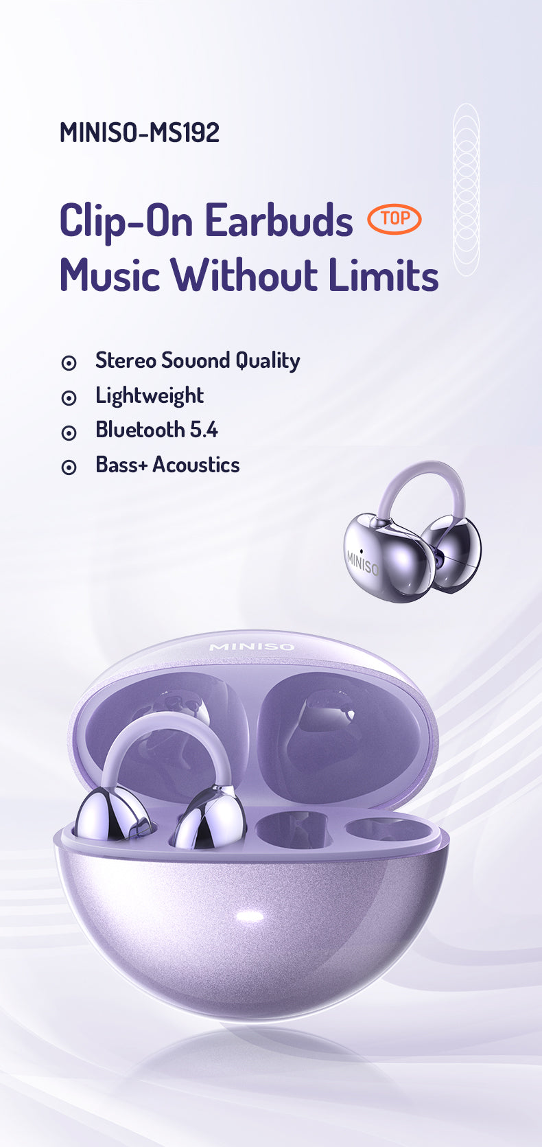 MINISO MS209 AI translation earbuds with open-ear comfort, adjustable fit, deep bass, Hi-Res sound, and real-time translation in 135 languages—ideal for music, calls, and global communication.